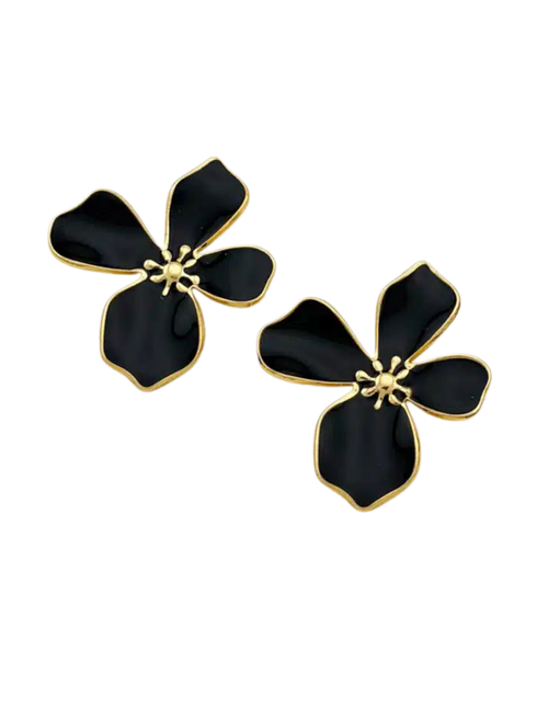 Gold Black Blossom Earrings